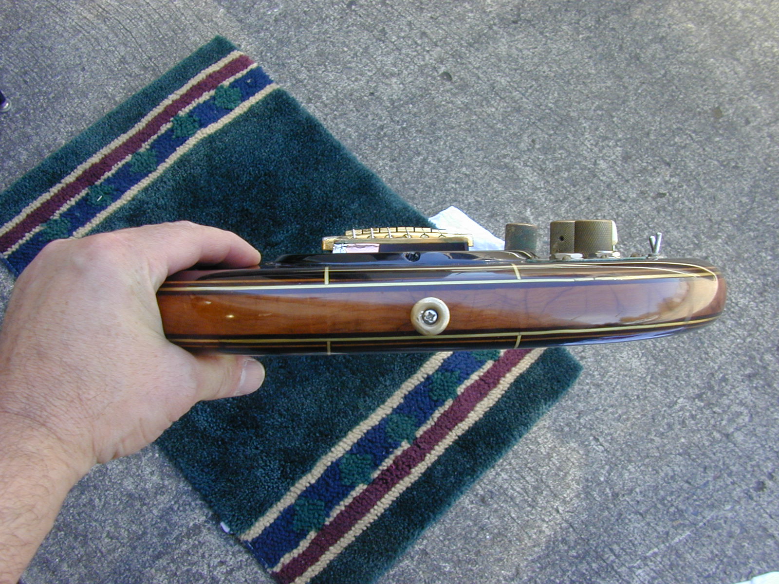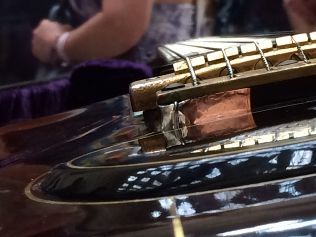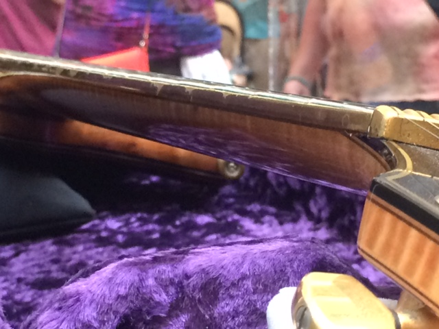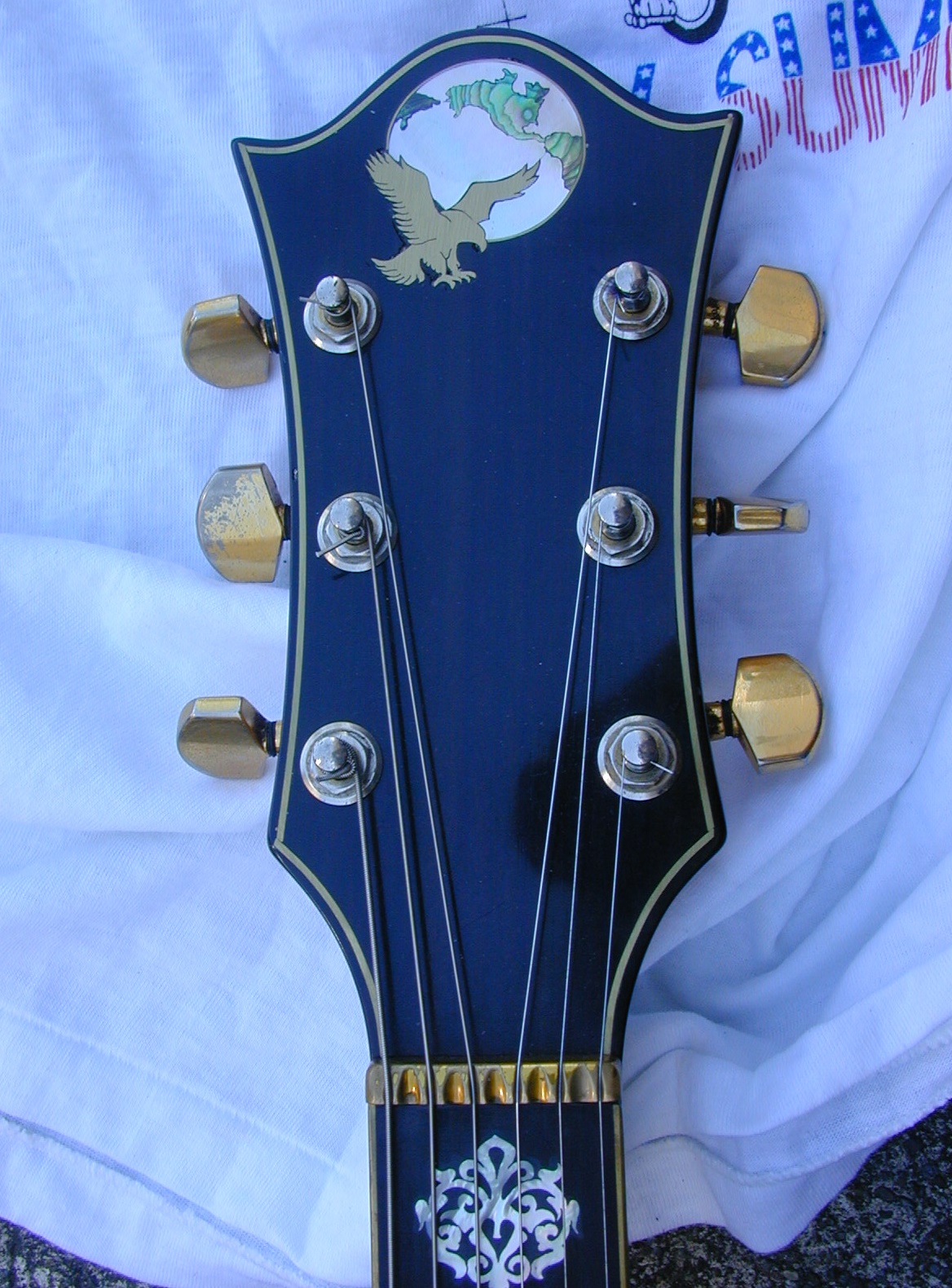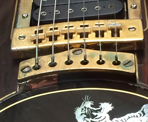 custom made for the guitar.) The brass nut is scalloped between the strings,