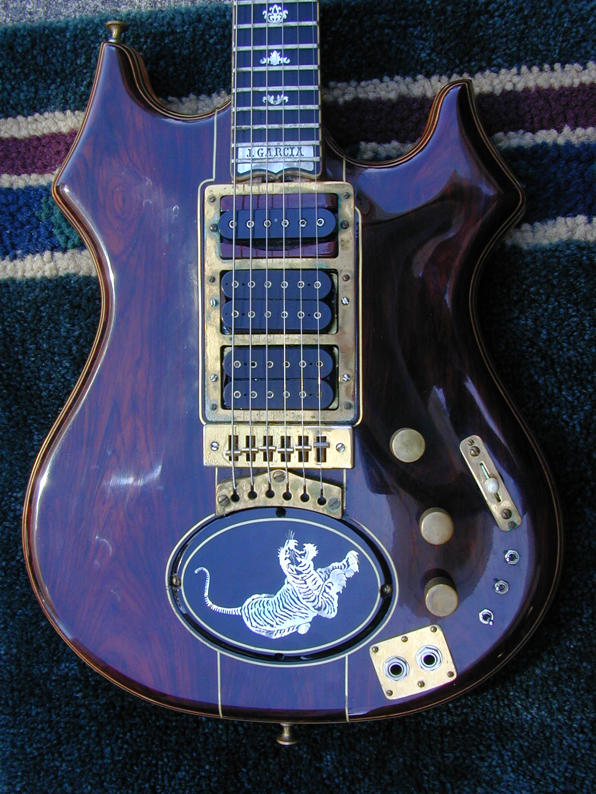 The aspect of Tiger I am most acquainted with is its electronics. The guitar features a single-coil in the neck position, as opposed to the humbuckers you see on his other instruments. Garcia used a DiMarzio SDS-1 Strat-style pickup in the neck, and DiMarzio Super 2s in the middle and bridge. There is also a coil-cut switch for the middle and bridge pickups.