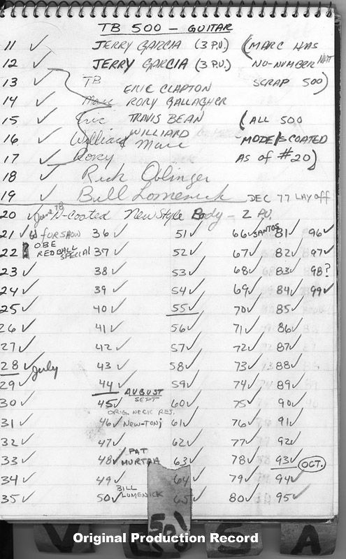 Jerry bought a new 1000A, #164 on November 19th 1975 from Drapers Music where Big Steve originally purchased #51. During the Fall/Winter JGB tour break Jerry purchased #164 but its unknown if #51 was damaged already or if he sought a backup so he could modify #51. No pictures are known to exist of #51 being used after the purchase of #164. As Steve states, #51 was bought and brought to him, however the 2nd TB1000A #164 has proof of Jerry playing it on Drapers showroom floor that day in November of 75.